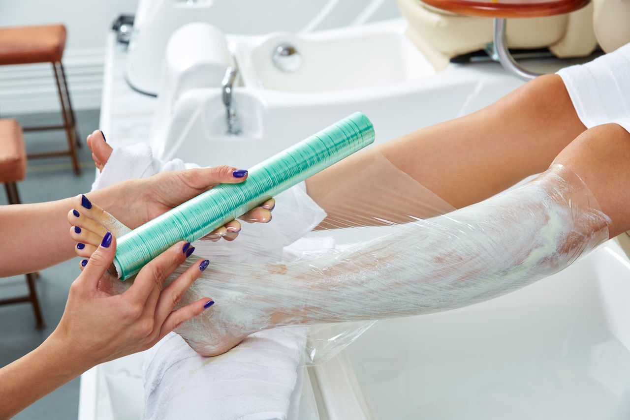 Сначала на кожу наносят ферментированное средство, разрушающее структуру волос. Сверху депиляционную массу накрывают пленкой и бандажом и прогревают тепловым эпилятором. Под воздействием горячего воздуха средство быстрее проникает в структуру волос. А главное, открывается подступ к волосяным фолликулам.