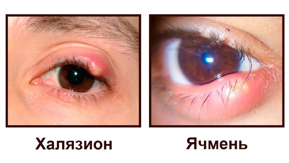 - Халязион — воспаление, при котором мейбомиева железа отекает, закупоривается. Похоже на ячмень, но припухлость формируется внутри века, а само воспаление может стать хроническим.