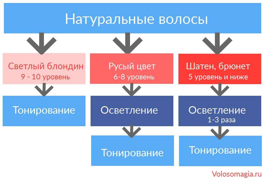 - Исходного цвета волос (натуральный, окрашенный, темный, светлый)