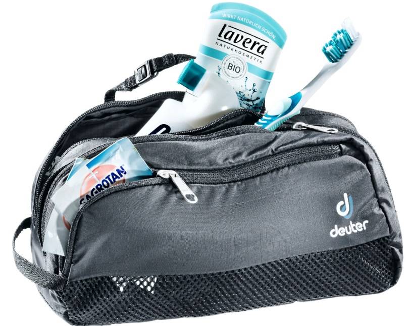 Эта небольшая дорожная косметичка отлично подойдет для непродолжительной поездки. А если вместо полноразмерных средств использовать их «трэвел» версии, то в эту малышку легко поместится весь арсенал необходимых средств.